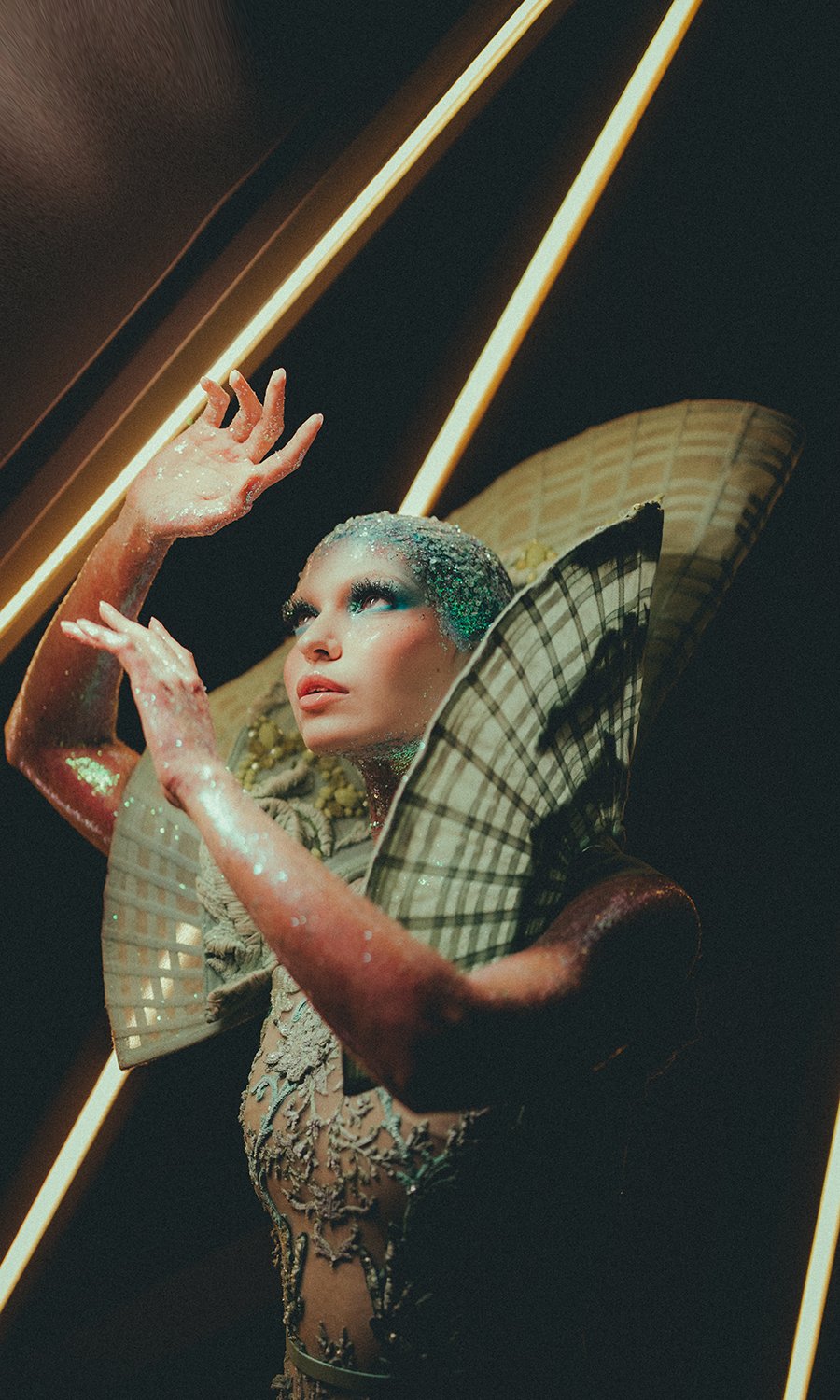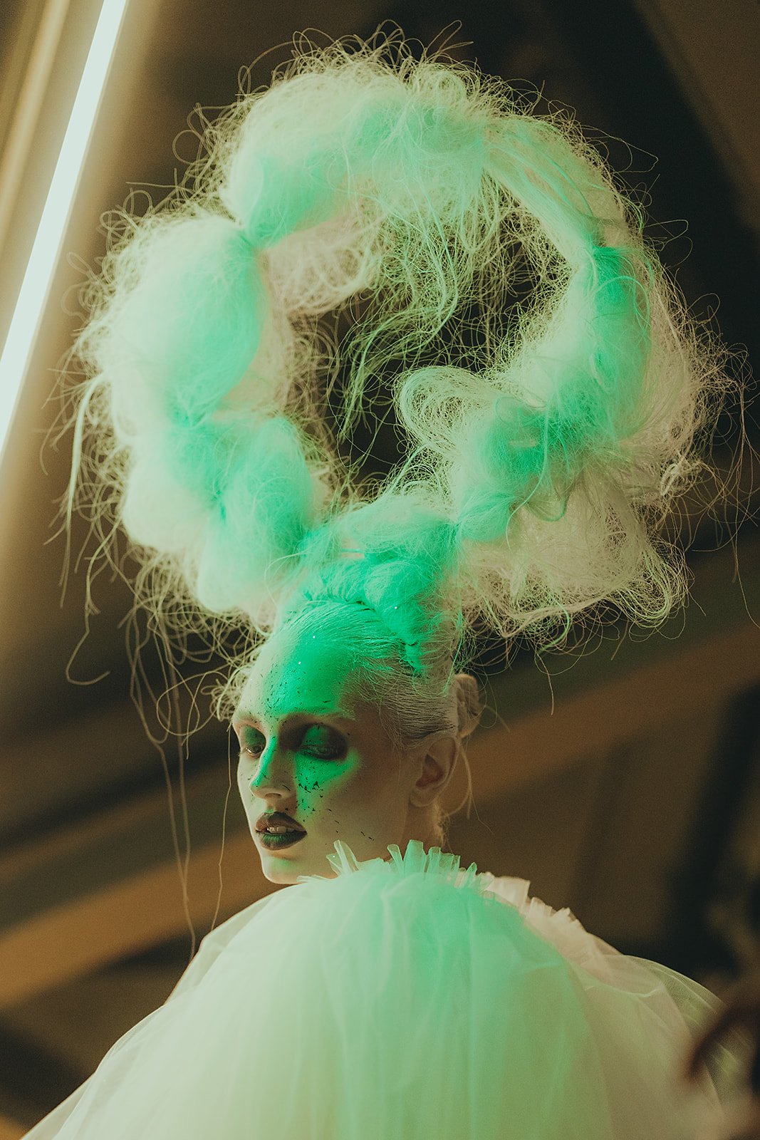 Creation of an avant-garde editorial look. Focus: Creative textures and runway techniques.